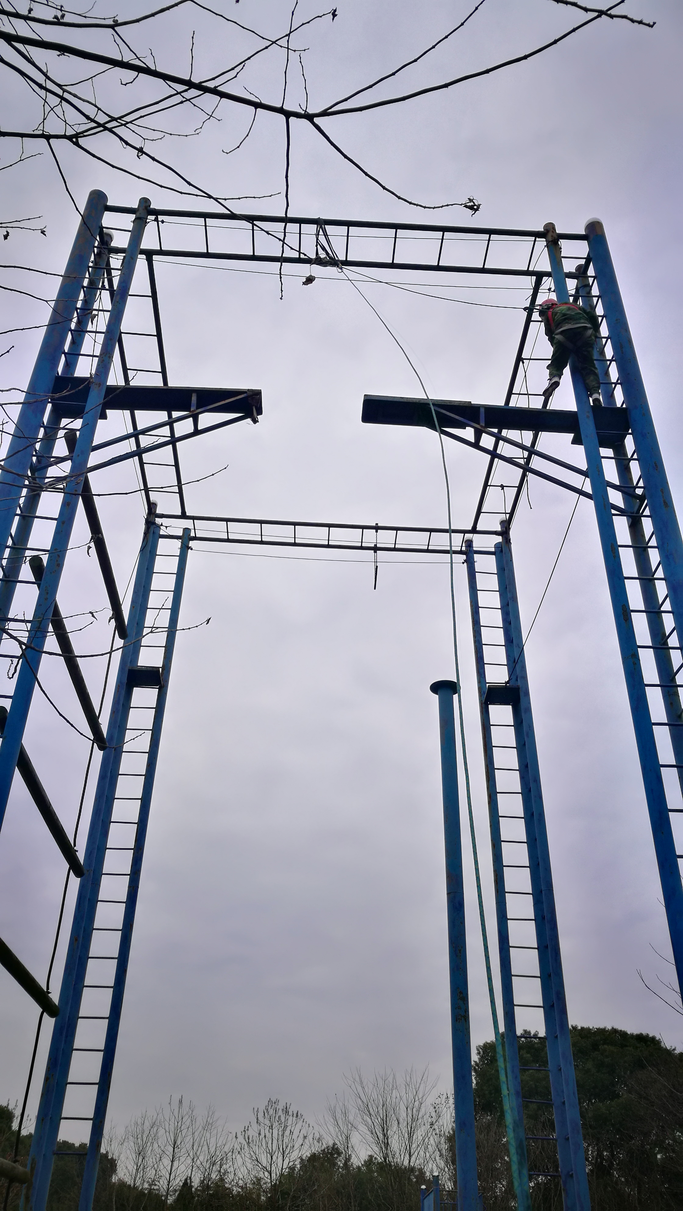 面對“高空飛躍”這個項目,想必不少人都會望而卻步吧。十來米的跳板,縱身一跳,雖說有安全繩,但想想都刺激?。∠胍聛?,前提是爬上去并跨過那條鴻溝。冬日的高空中,站在十米的跳板上面瑟瑟發(fā)抖,我告訴自己,必須得邁過去,立刻,馬上!我不敢看下面,也不允許自己多想,否則只會增加自己的恐懼。隱隱約約感覺跳板晃的厲害,我目視前方,踏出了那關(guān)鍵的一步,之后,毅然決然的邁了過去,一個華麗的轉(zhuǎn)身,跳了下來!用著“天外飛仙”的姿勢,第一次飛了一次。說實話,事后感覺還不錯!但是,對于有點恐高的同事來說,這絕對是一次了不起的挑戰(zhàn),突破了自己??v然停步不前,縱然前有猛虎,但我們還是得敢于亮劍,勇于亮劍,自己才是最大敵人,所以必須先戰(zhàn)勝自己,方能取得成功!在這同時,團隊的力量也是功不可沒的,最多的就是鼓勵,也有鞭策。當在上面覺得晃,有人主動去扶柱子,當覺得繩子松時,又有人去拽繩子等等。雖說只是心理的影響,但還是能給站在高空的隊員極大的鼓舞和安慰。同樣在工作中我們團隊的每一個人都有可能存在自己的短板,但我們還有整個團隊作為后盾來指導和鼓勵,所以我們可以無所畏懼勇敢前行。