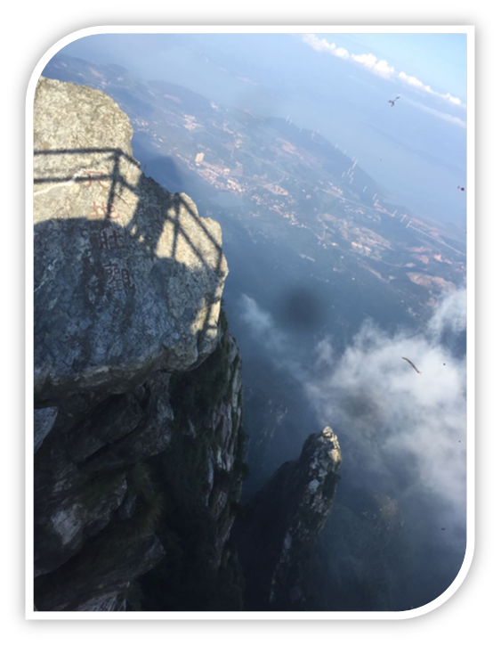 ? ? 仁者樂山,智者樂水。自古山水不分家,依山傍水,方為人間至境。來到這樣一座名山,爬山乃是在理所當(dāng)然的事了,這次我們的行程安排是五老峰,因?yàn)閷?dǎo)游說五老峰雖高度略低于漢陽峰,但其雄奇卻有過之而無不及,為全山形勢最雄偉奇險(xiǎn)之勝景。都說,爬山就是人生,越到高處,越能見識其中的美妙。否則怎么會有主席的著名詩句“無限風(fēng)光在險(xiǎn)峰”,爬山是需要勇氣的,因?yàn)檎娴暮芾?,但是?dāng)我達(dá)到第一險(xiǎn)峰的時(shí)候,我放眼望去,所有風(fēng)景盡在我腳下,我就覺得所有的累都是為了迎接這一刻的美好,反而后面我越走越輕松,越走越興奮,因?yàn)檫€有更加遼闊的風(fēng)景在前面等著我,當(dāng)我跑至第三險(xiǎn)的時(shí)候,我徹底被這大自然的神來之作征服了,它是如此的雄奇秀麗蔚為大觀,奇巖怪石千姿百態(tài)。我當(dāng)場感嘆于大自然的神奇,賦到“非人有此神力,此乃天作”。